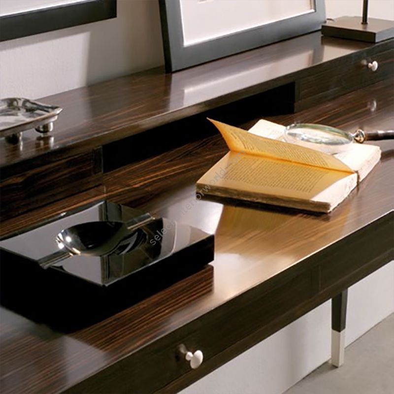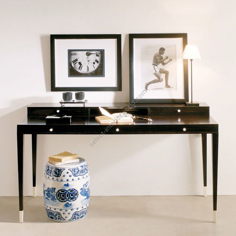 The Victoria desk comes in different finishes: legs and top in gloss or mat makassar ebony, mat lacquered top with black/ivory galuchat-effect leather insert and mat lacquered legs, top and legs in mat or gloss lacquered.