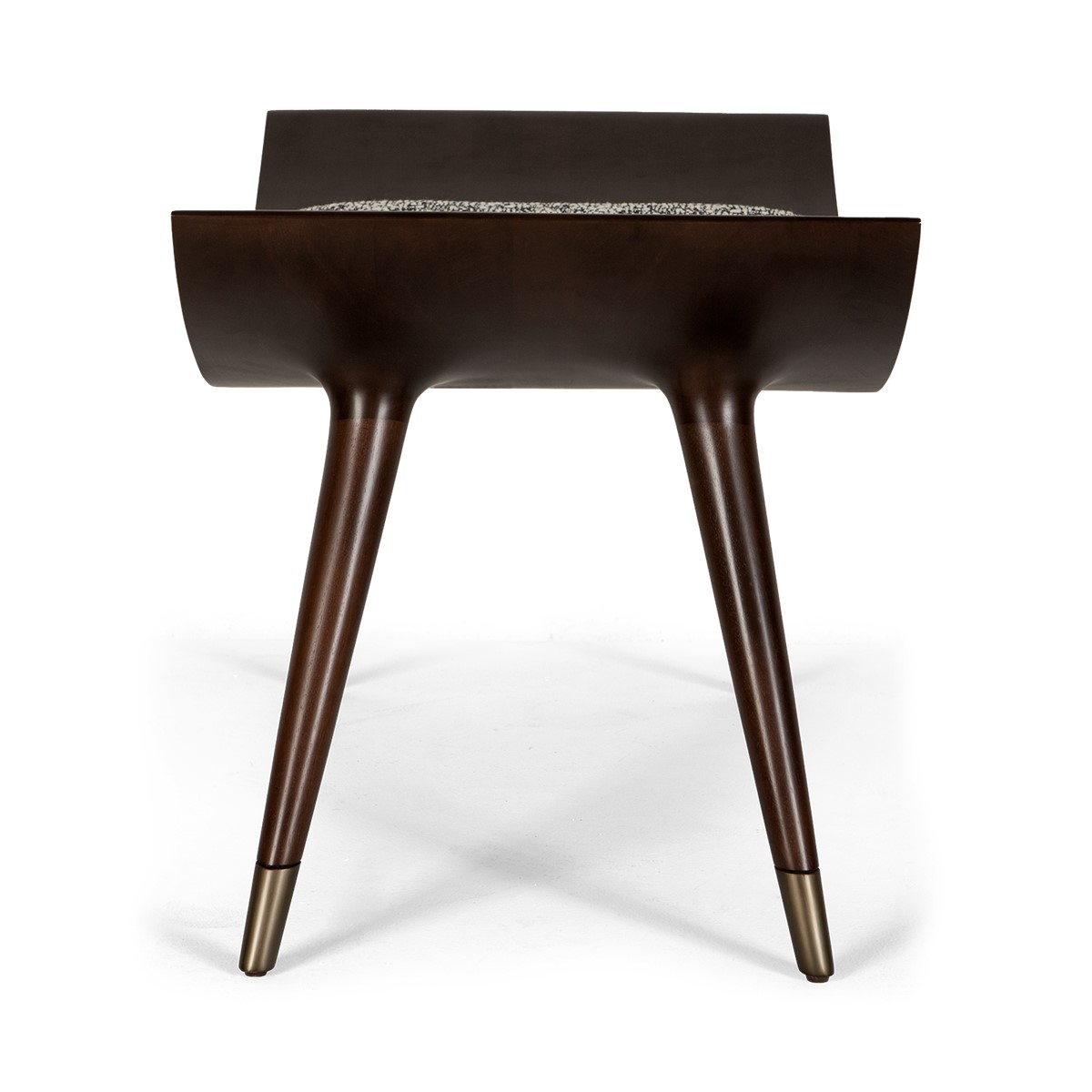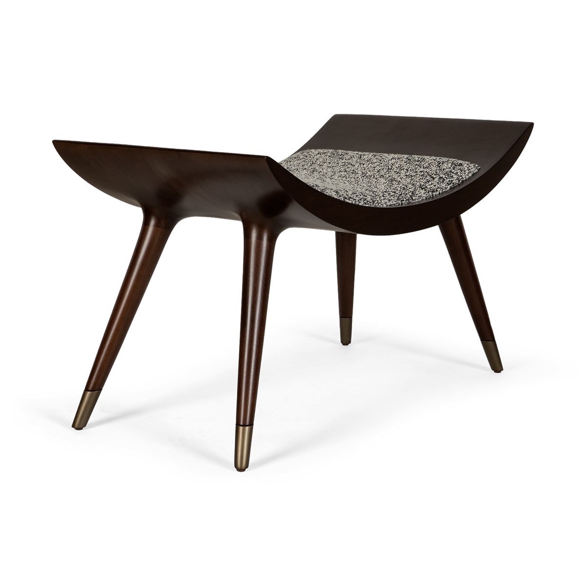 With a hark-back to Modernism in the metal finish tipped legs, and a heart of Art Deco in the lightly upholstered curved seat, this is a stool whose beauty lies in its intrinsic simplicity.