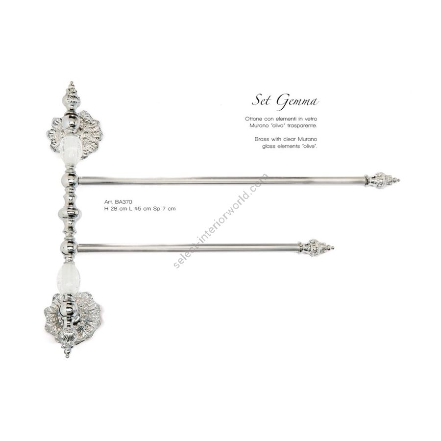 Double Towel holder in brass with oliva in transparent Murano glass. Functional elements that create an extremely elegant, welcoming and high-value bathroom.