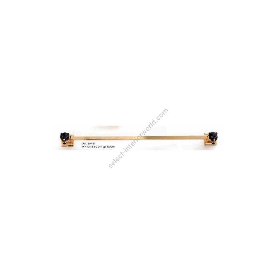 Towel holder in gold 24k with micro casting of enameled brass panther. Functional elements that create an extremely elegant, welcoming and high-value bathroom.