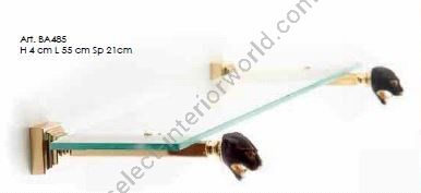 Glass shelf in gold24k with micro casting of enameled brass panther. Functional elements that create an extremely elegant, welcoming and high-value bathroom.