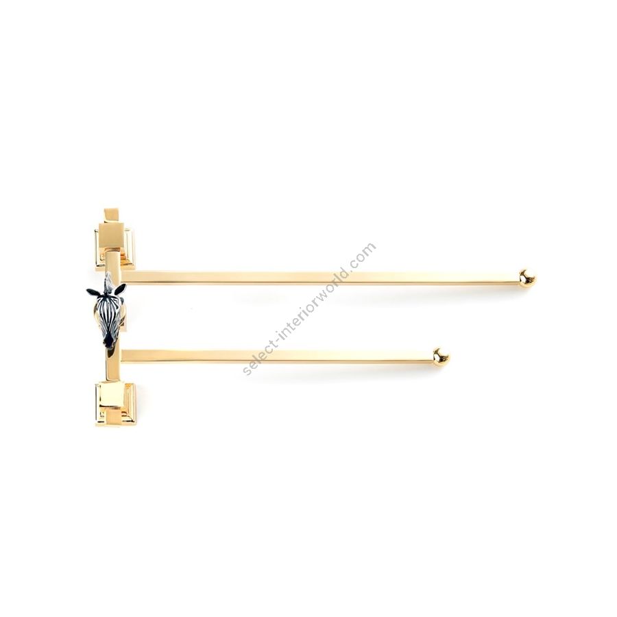 Double towel holder in gold 24K with micro casting of enameled brass panther. Functional elements that create an extremely elegant, welcoming and high-value bathroom.