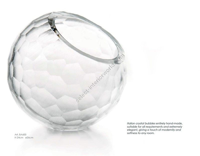 Italian clear scratched crystal basket sphere. Functional elements that create an extremely elegant, welcoming and high-value bathroom.