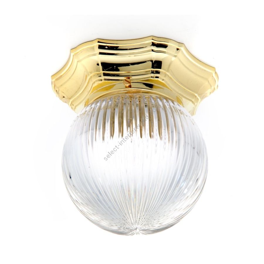 Ceiling brass with crystal. Lighting item that diffuses the light with great effect in the surrounding environement creating a warm and welcoming atmosphere.