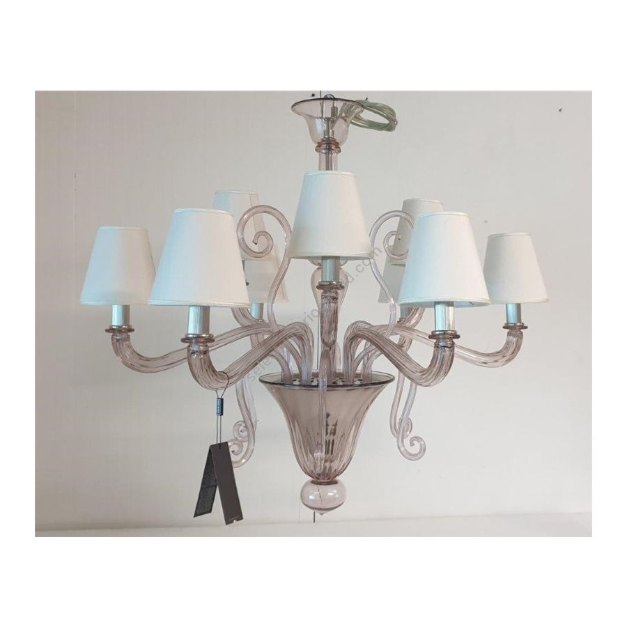 Chandelier in lilac Murano glass with conical lampshade