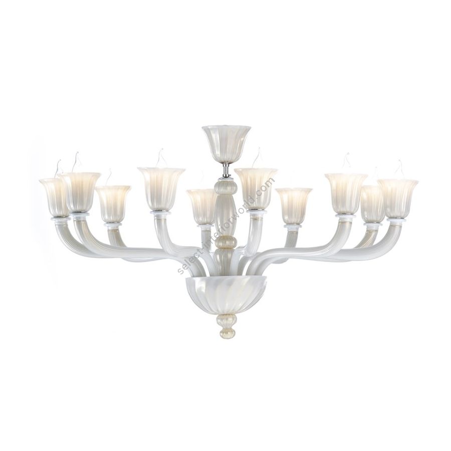 Chandelier with Murano Glass White/gold. Lighting item that diffuses the light with great effect in the surrounding environement creating a warm and welcoming atmosphere.