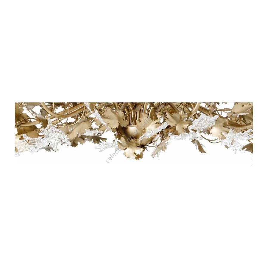 Chandelier with VINE LEAVES in metal and Murano Glass, lampshades in organza. Lighting item that diffuses the light with great effect in the surrounding environement creating a warm and welcoming atmosphere.