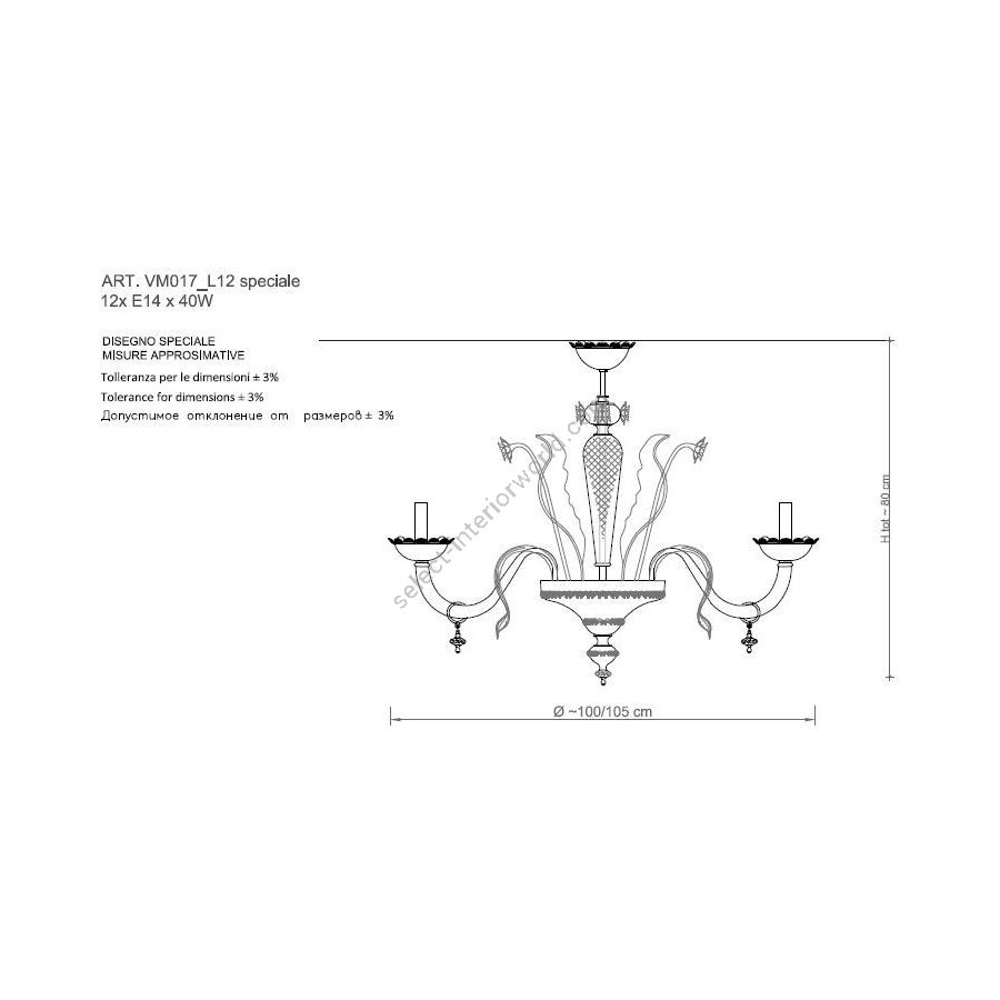 Bulbs: 12xE14xLed| Dimensions (HxWxD): | cm: 80x100 / inch: 31.5x39.37 |