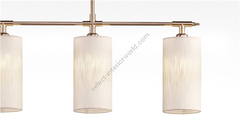 The high-quality brass chandelier, with its linear design, represents a refined and versatile choice for kitchens, countertops, and tables. Harmoniously combining modern and classic elements, this chandelier is capable of casting a soft and diffused light, thanks to its fabric lampshades. The blend of premium materials and its understated style make it perfect for creating a cozy yet elegant atmosphere. With its touch of sophistication, this chandelier adds a distinctive and classy element to the surrounding environment.