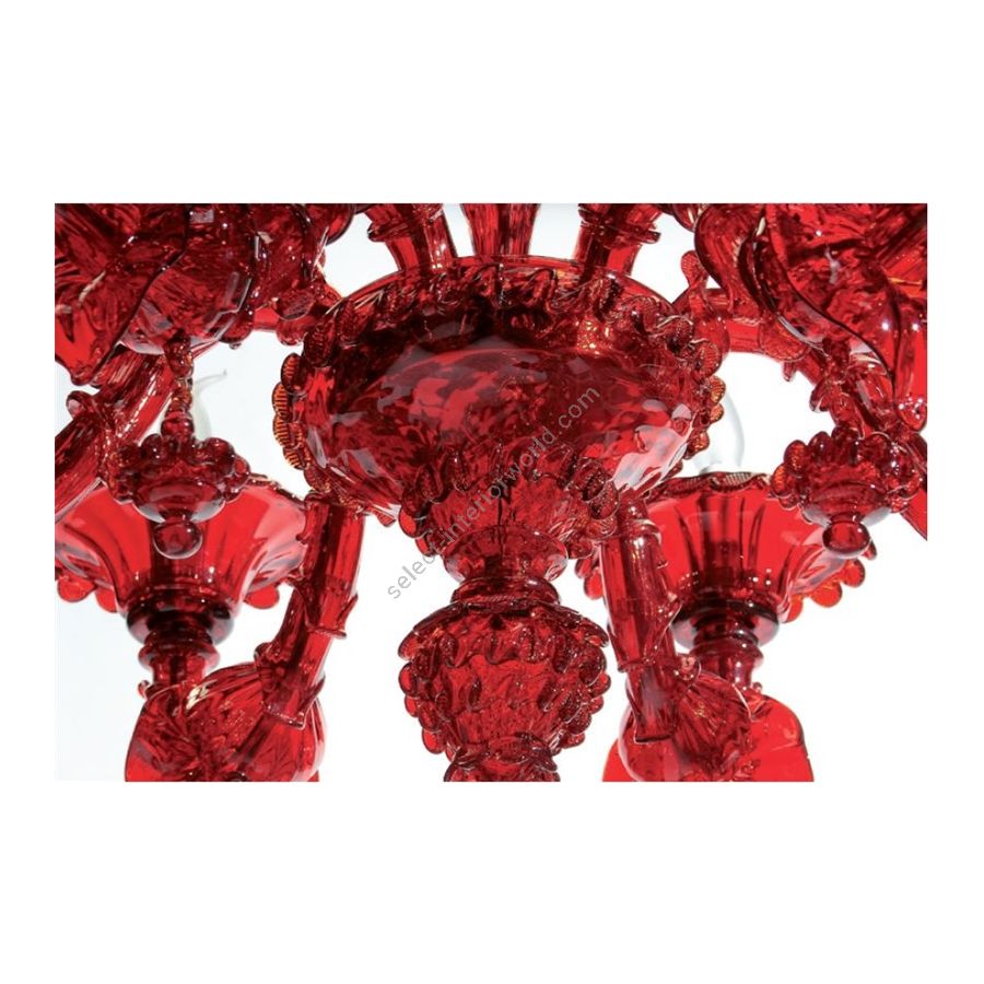 6 lights red chandelier. Lighting fixture that diffuses the light into the surrounding environment with great effect, creating a warm and welcoming atmosphere.