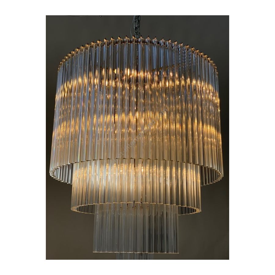 Ceiling lamp with triedro Murano Glass transparent. Lighting item that diffuses the light with great effect in the surrounding environement creating a warm and welcoming atmosphere.