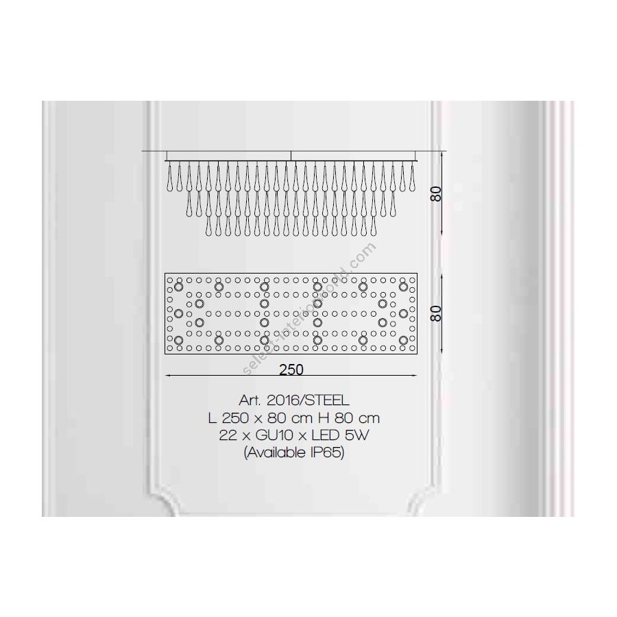 Bulbs: 22 x GU 10 x 5W Led (buls not included)| Dimensions (HxWxD): | cm: 80x250x80 / inch: 31.50x98.43x31.50 |