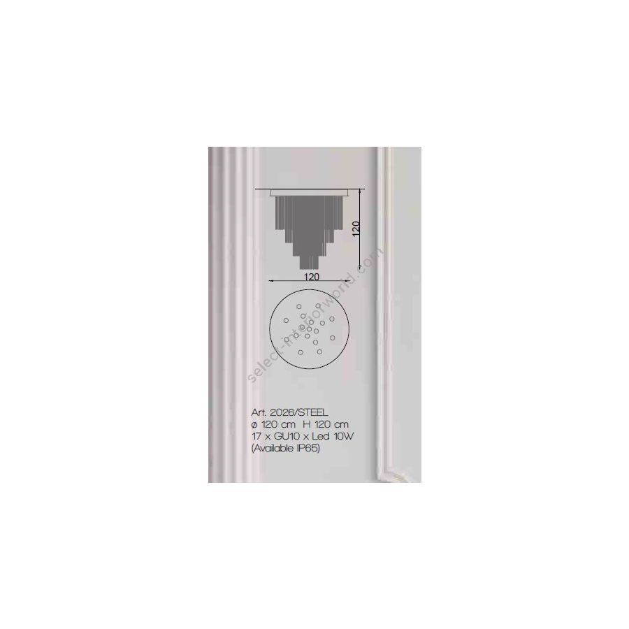 Bulbs: 17xGU10xLed 10W (buls not included)| Dimensions (HxWxD): | cm: 120x120 / inch: 47.24"x47.24" |