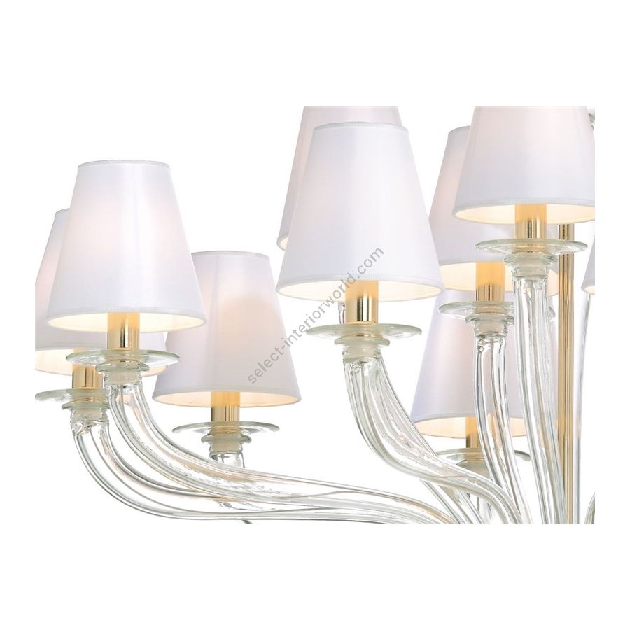 Murano Glass Chandelier in complete trasparent color with lampshades. Lighting item that diffuses the light with great effect in the surrounding environement creating a warm and welcoming atmosphere.