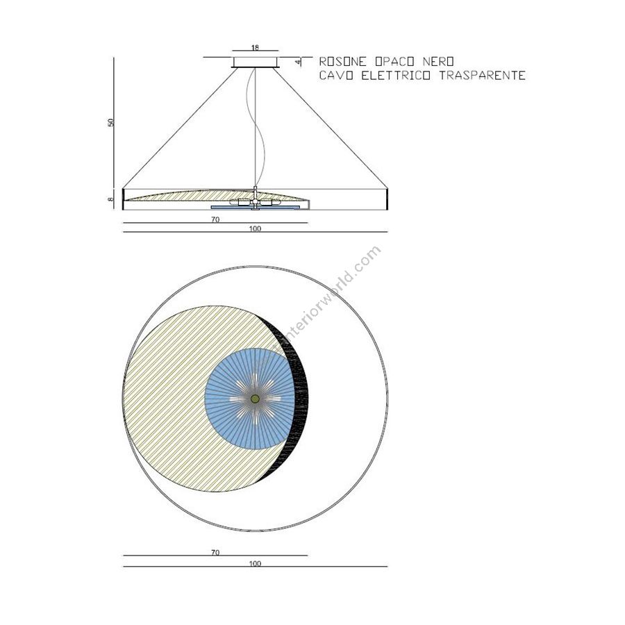 "Eye" collection, Ring in matt black metal with gold leaf lens and diffuser in Italian lead crystal entirely hand-milled. Lighting item that diffuses the light with great effect in the surrounding environement creating a warm and welcoming atmosphere.