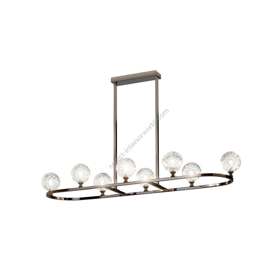 Chandelier with hand-cut italian crystal spheres rectangulare. Lighting item that diffuses the light with great effect in the surrounding environement creating a warm and welcoming atmosphere.
