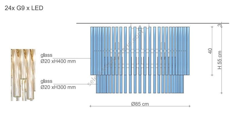 Bulbs: 24 x G9 x Led| Dimensions (HxWxD): | cm: 58x85 / inch: 22.83"x33.46" |