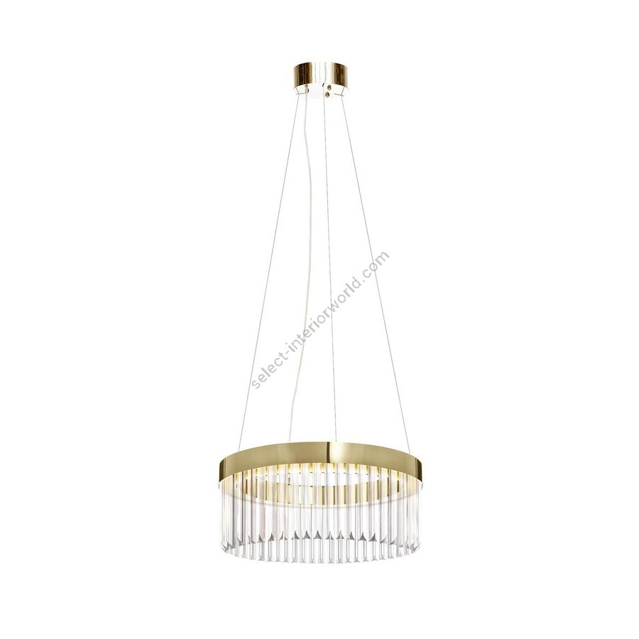 Soft Gold Ring chandelier with Led and transparent trihedrons Glass. Lighting item that diffuses the light with great effect in the surrounding environement creating a warm and welcoming atmosphere.