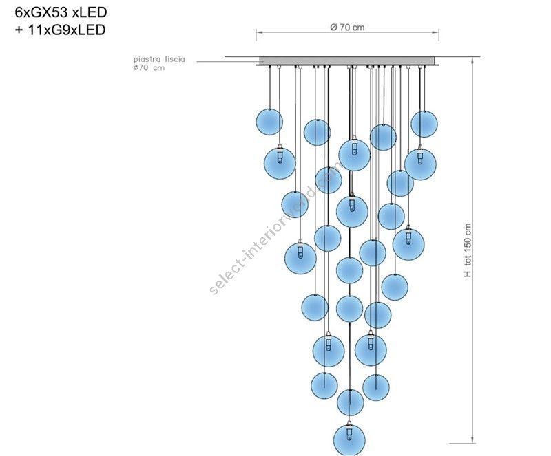 | Bulbs | 6xGx53xLed + 11xG9xLed (bulbs not included) |
