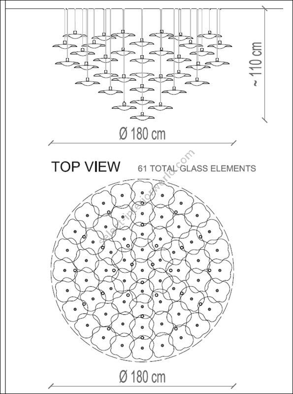 | Size | D. 180 cm x OH 110 cm - Kg 60 (steel cable ajustable)0 |