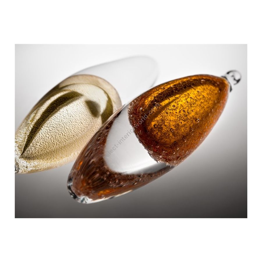 Murano glass pendants with the ""scattered glass"" technique are handcrafted objects made by the master glassmakers of Murano, a renowned island in the Venice lagoon famous for producing glass objects since the 14th century. The scattered glass technique involves applying intense flame to the still-incandescent glass to make it ""explode"" and create a rough and irregular surface that gives the pendant a unique and original appearance. The process requires great skill and patience, as the glass must be heated carefully to avoid breaking completely. The result is an organic-shaped pendant, with nuances of color and luminous reflections that change depending on the angle of light. Each piece is unique and has small differences compared to the others, as the handcrafted process makes each object different from the other. Murano glass pendants with the "scattered glass" technique are ideal for enriching a look with a touch of originality and elegance, and are appreciated by those who love craftsmanship refinement and innovative design.
