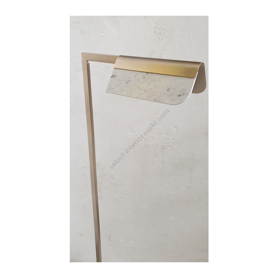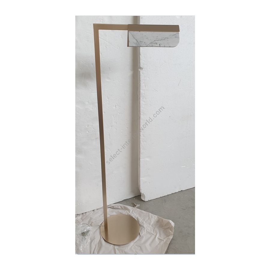 Floor reading lamp in soft gold finishing and white Carrara marble element. Lighting item that diffuses the light with great effect in the surrounding environement creating a warm and welcoming atmosphere.