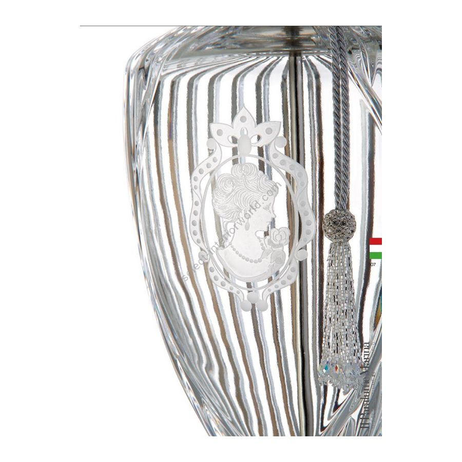 Crystal Table lamp, Fiorentine Crystal made in italy, with Cameo carved included lampshade. Tassel Nr 15 not included in the price. Lighting item that diffuses the light with great effect in the surrounding environement creating a warm and welcoming atmosphere.