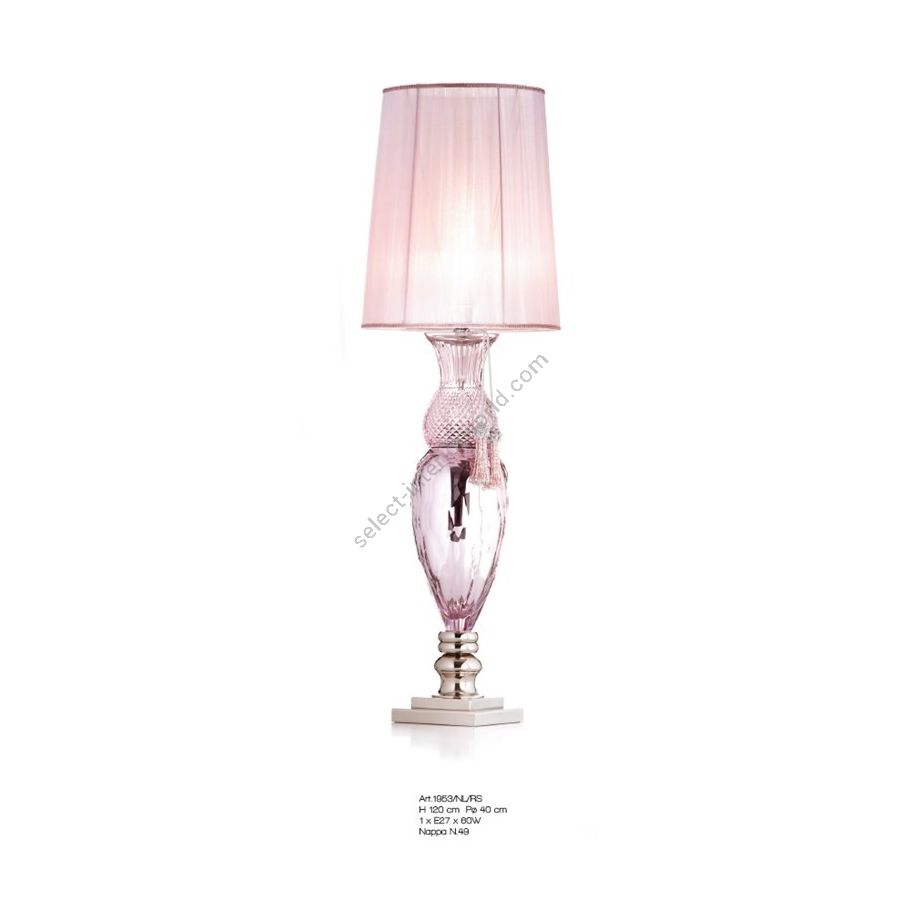 Table lamp in pink Florentine hand-cutted crystal with mirror effect. (pb24%) (tassel N49 is not included). Lighting item that diffuses the light with great effect in the surrounding environement creating a warm and welcoming atmosphere.