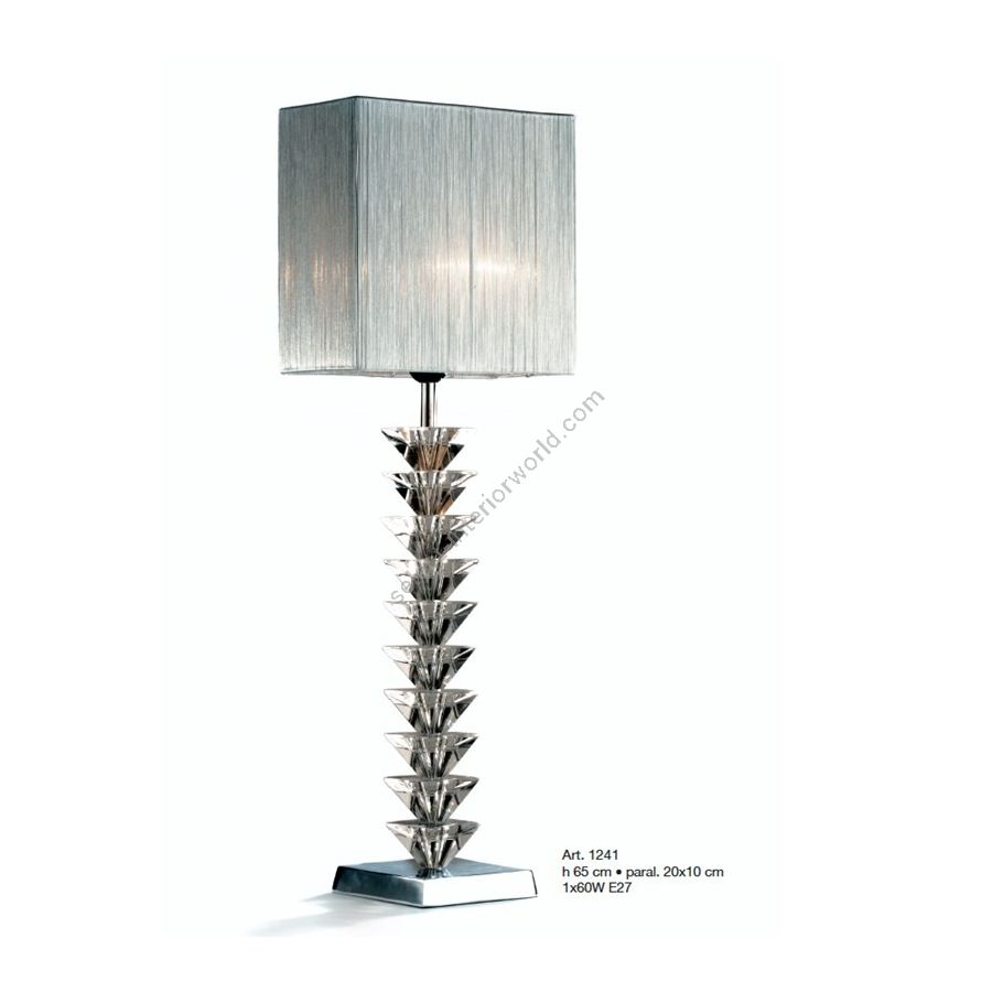 Lamp with square base and crystal, white cubic lampshade. Lighting fixture that diffuses the light into the surrounding environment with great effect, creating a warm and welcoming atmosphere.