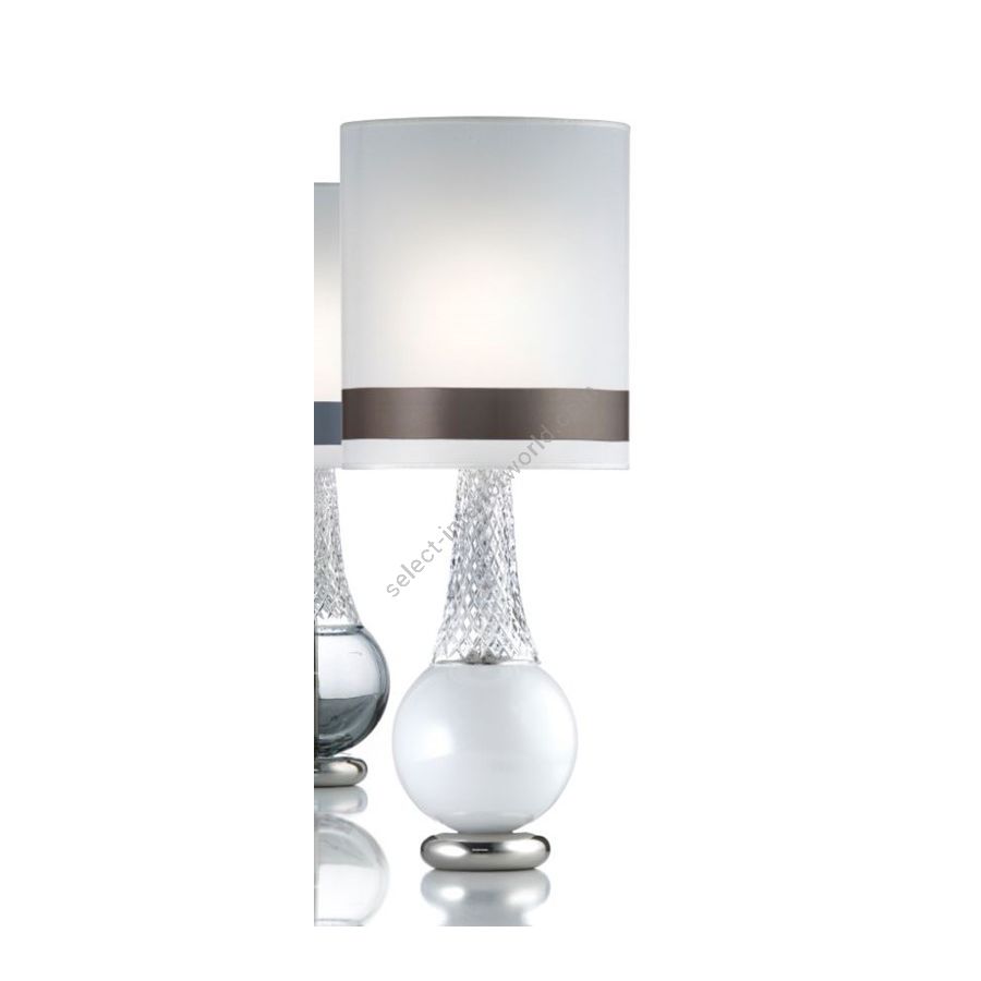 Table lamp in white and clear italian hand-cutted Crystal (pb24%). Lighting item that diffuses the light with great effect in the surrounding environement creating a warm and welcoming atmosphere.