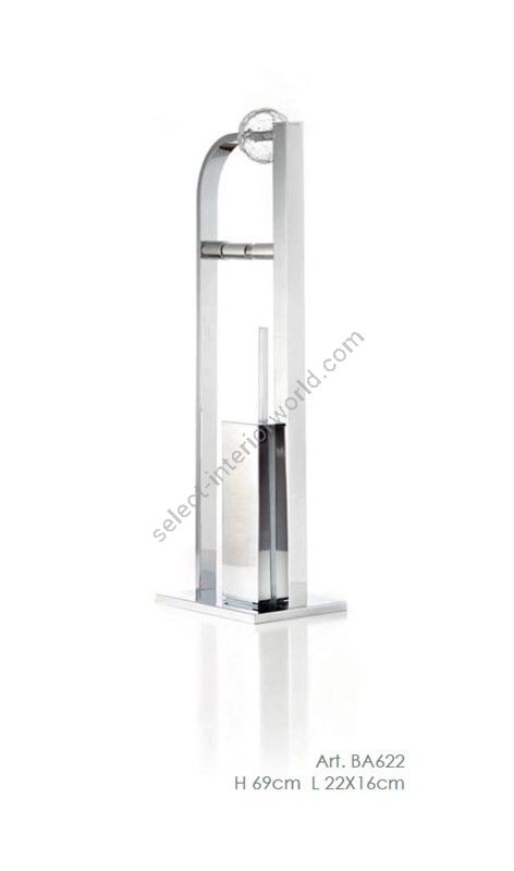 Brass ribbon toilet brush set with hand-cutted polished clear crystal sphere. Functional elements that create an extremely elegant, welcoming and high-value bathroom.