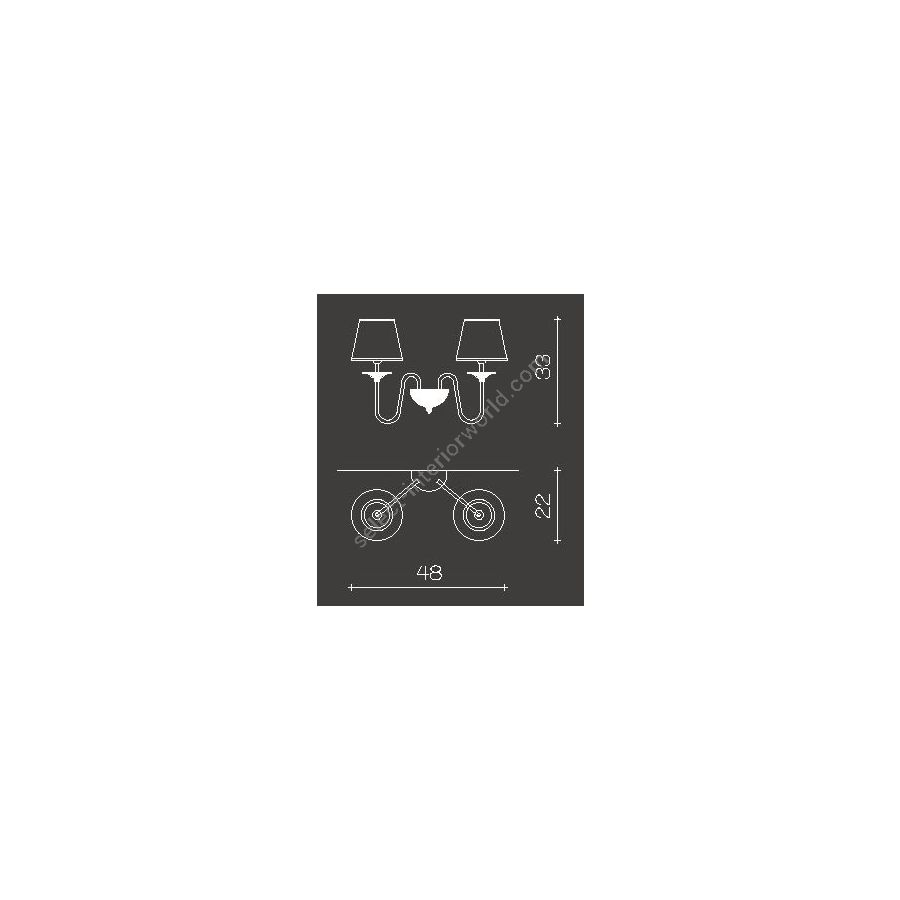 Bulbs: 2x E14 x 40W| Dimensions (HxWxD): | cm: 33x48x22 / inch: 12.99"x18.9"x8.66" |