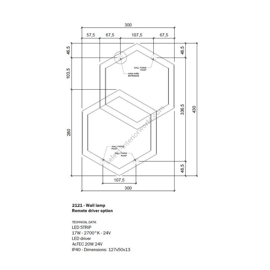 Hexagon collection wall sconce metal Brass with Strip Led. Remote Driver included. Lighting item that diffuses the light with great effect in the surrounding environement creating a warm and welcoming atmosphere.