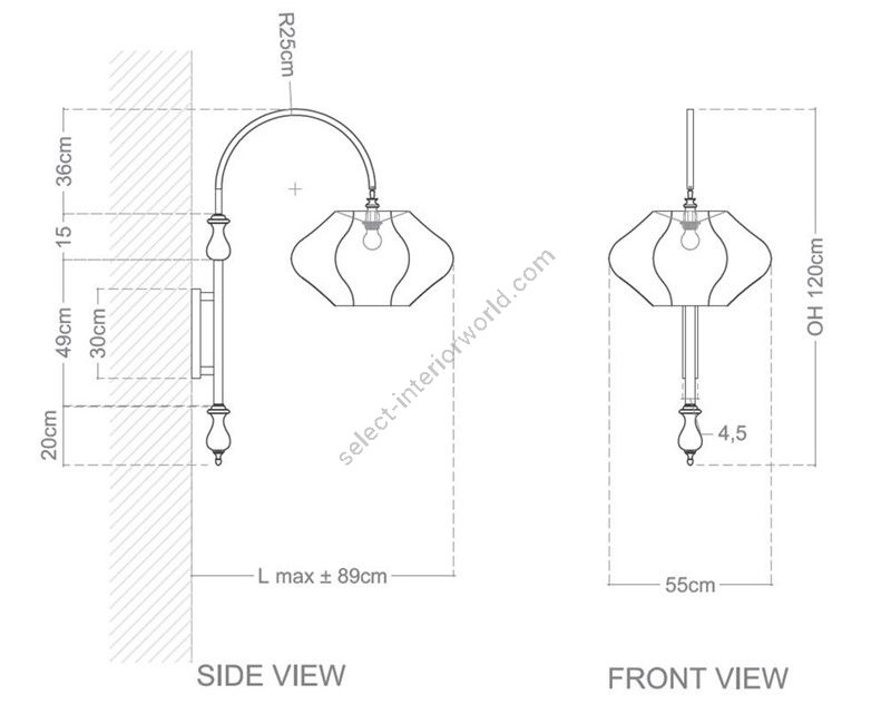 | Dimensions (HxWxD): | cm: 120x55x89 / inch: 47.24"x21.65"x35.04" |