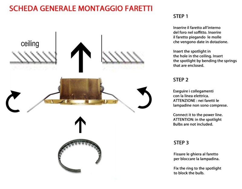 Size:L 100 x 100 mm D. INT 52mm D. Foro per incasso 65mm completo di molle-with screw Kg 1
