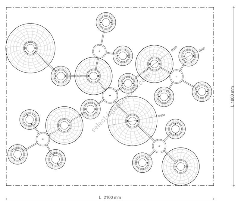 Bulbs: 19 x GX53| Dimensions (HxWxD): | cm: 35.5x210x180 / inches: 13.98"x82.68"x70.87" |
