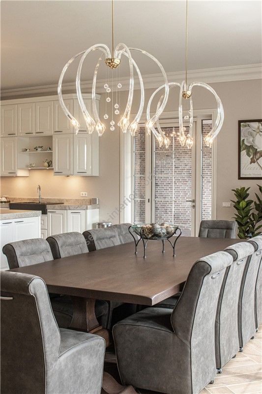 The Chill Out is a dire eye-catcher due to its glass fixtures and crystal details. Each and every detail of the fixture is crafted with the utmost care and precision, resulting in a flawless finish. The open structure offers a versatile luminary, which may be thought of as an abstract chandelier. The Chill Out has a more classical touch, and is fitted with high-quality crystal. It is best described as beautiful piece of design, perfectly suited for the more classical interiors, or on the contrary, a twist to a more modern interior design.