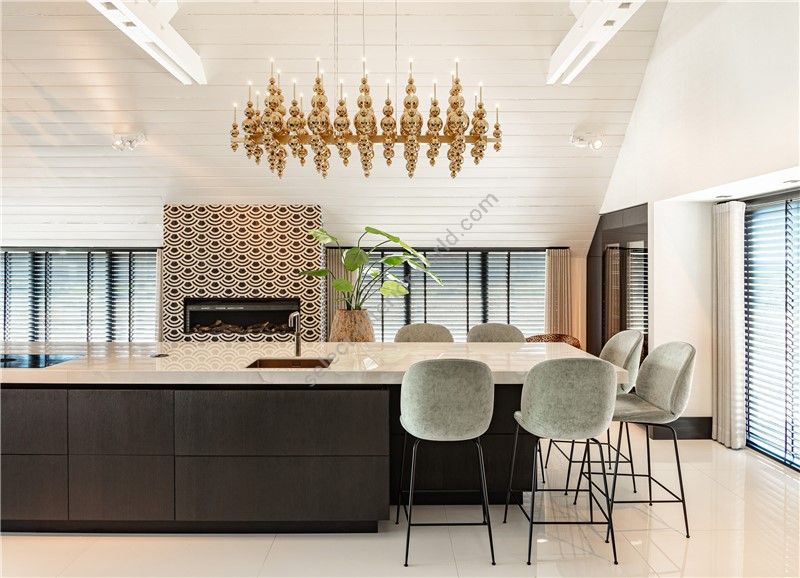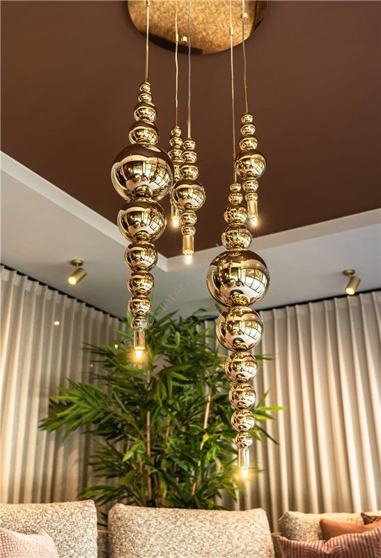 The Tears From Moon collection is able to cast away darkness, referring to the properties of lighting and the actual moon. The collection is the perfect combination of European high-quality materials and an eccentric design, handmade by specialists. Mouth-blown glass is customizable in different sizes and colours. Every colour and combination creates a different atmosphere. The glass is to be combined with refined metalwork in various finishings and either up- or downlight, or both. In addition, there are several options with details in glass, which can give the lighting an extra luxurious look.