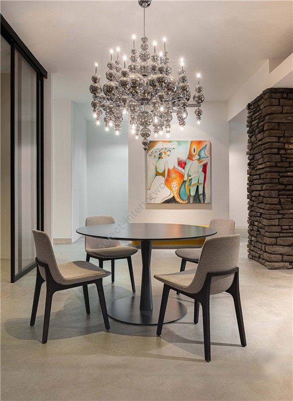 The Tears From Moon collection is able to cast away darkness, referring to the properties of lighting and the actual moon. The collection is the perfect combination of European high-quality materials and an eccentric design, handmade by specialists. Mouth-blown glass is customizable in different sizes and colours. Every colour and combination creates a different atmosphere. The glass is to be combined with refined metalwork in various finishings and either up- or downlight, or both. In addition, there are several options with details in glass, which can give the lighting an extra luxurious look.
