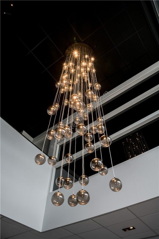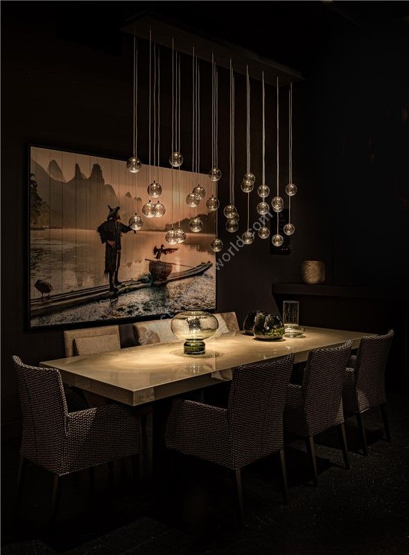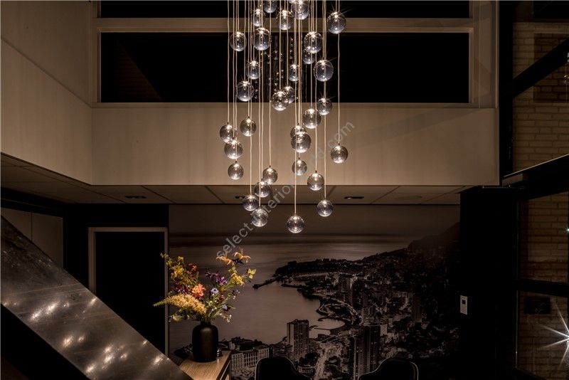 The Ballroom collection is inspired by the sight of a room full of individual dancers. The fixture is perfectly designed to illuminate a room, and add a playful character to a space. However, this luminaire also has the ability to provide a breathtaking element to a room, bringing light, air and atmosphere. The collection is available in various shapes. It can be adjusted in quantity, length and width to suit, for instance, the entry hall of a residence.