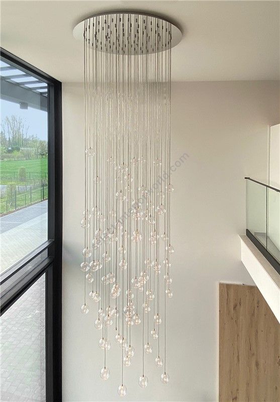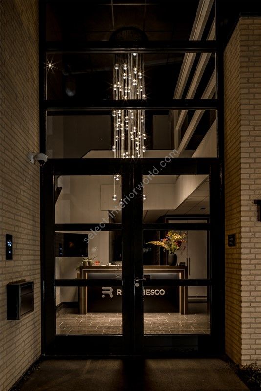The Ballroom collection is inspired by the sight of a room full of individual dancers. The fixture is perfectly designed to illuminate a room, and add a playful character to a space. However, this luminaire also has the ability to provide a breathtaking element to a room, bringing light, air and atmosphere. The collection is available in various shapes. It can be adjusted in quantity, length and width to suit, for instance, the entry hall of a residence.