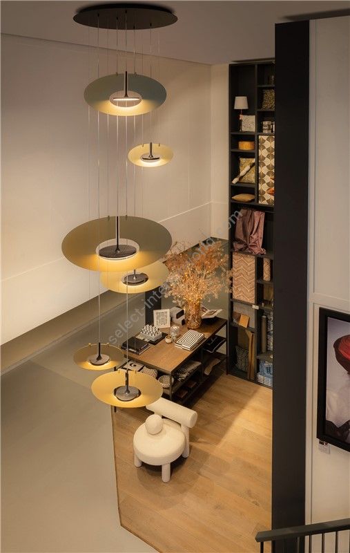 The design of the Eye in the Sky is stylish, minimalistic and completely balanced. This luminary is a real asset for both modern and classic interiors. The oval discs are made of premium anodized aluminum, either in matt gold or matt silver. The collection includes various lighting designs, including ceiling fixtures which are customisable in layout and quantity, and gorgeous floor luminaires.