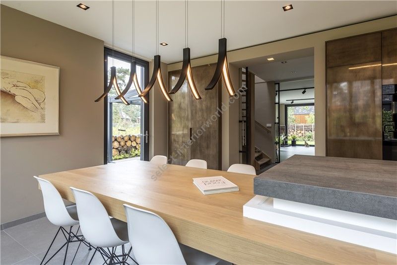 The Stream collection is best described as a modern, elegant and pure design with beautiful features. Inspired by a flock of birds, and designed in an abstract manner. Its shapes create an excellent synergy. It is where symmetry becomes unity and creates a warm, powerful and inviting ambient that accommodates many interior designs. The Stream collection a fine piece of high-end designer lighting, and a great conversation piece. The high-end designer luminary has many possibilities with various wall fixtures, and many possibilities regarding the ceiling fixtures.