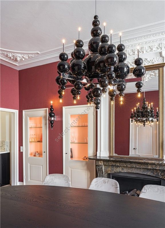 The Tears From Moon collection is able to cast away darkness, referring to the properties of lighting and the actual moon. The collection is the perfect combination of European high-quality materials and an eccentric design, handmade by specialists. Mouth-blown glass is customizable in different sizes and colours. Every colour and combination creates a different atmosphere. The glass is to be combined with refined metalwork in various finishings and either up- or downlight, or both. In addition, there are several options with details in glass, which can give the lighting an extra luxurious look.