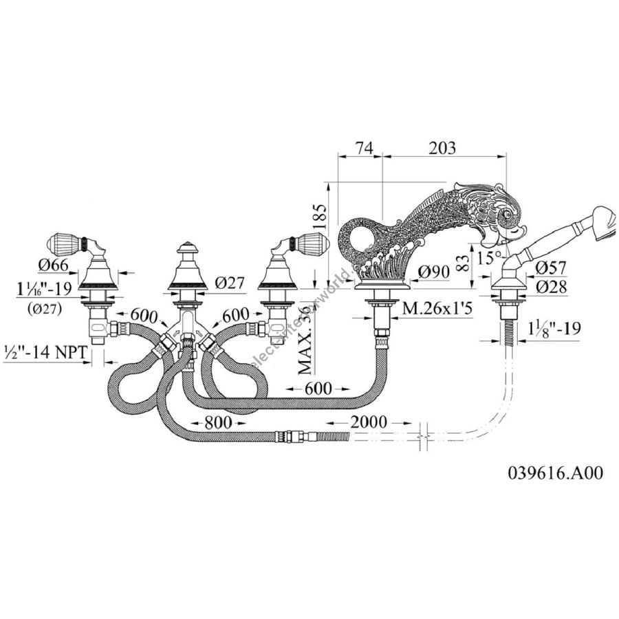 Bronces Mestre / Bath-Shower Fittings / Five holes bath set with Swarovski crystal 039616.A00.50