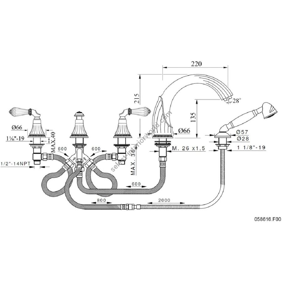 Bronces Mestre / Bath-Shower Fittings / Five holes bath set with Swarovski crystal 058616.F00.50