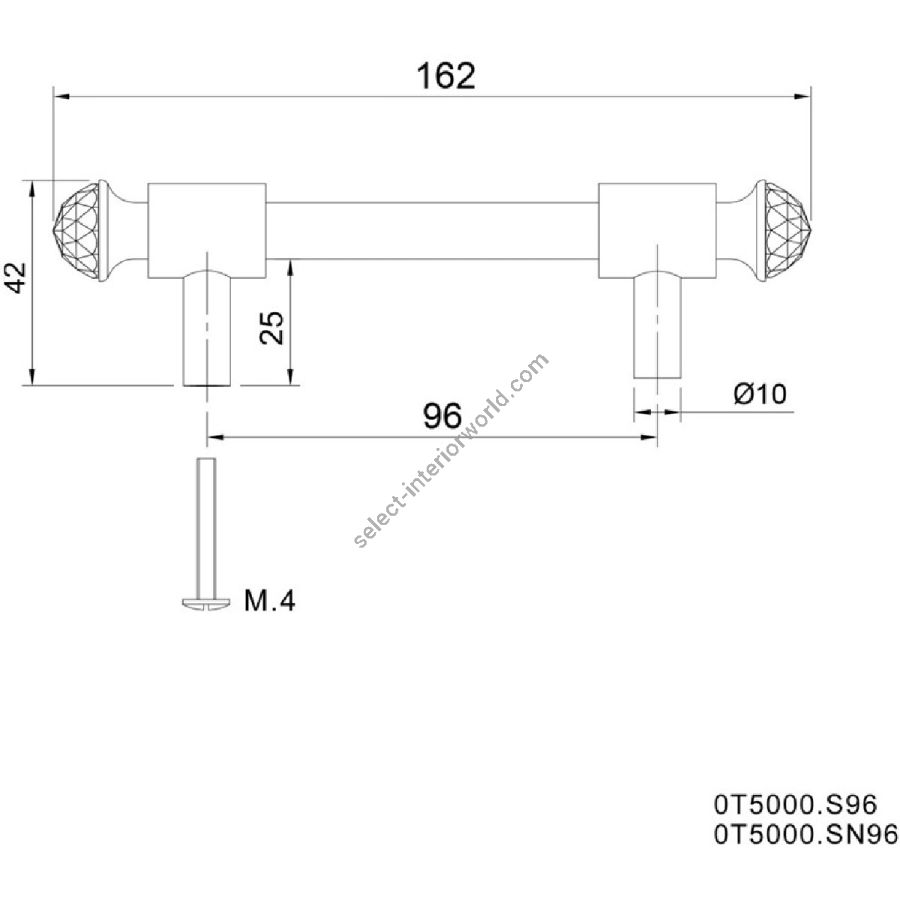 - Bronces Mestre / Furniture Handles / Clasica with black Swarovski crystal 96mm between centers 0T5000.SN96.30