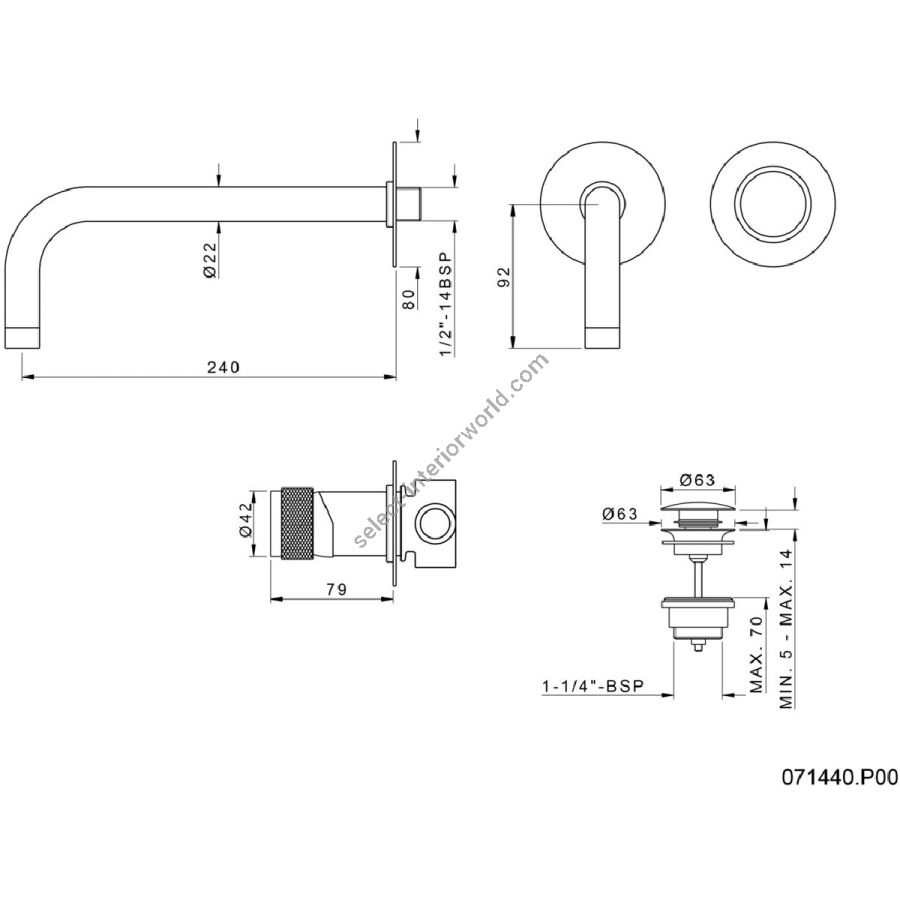 Bronces Mestre / Washbasin Fittings / Single lever wall basin mixer with decorated brass ring 071440.P00.50