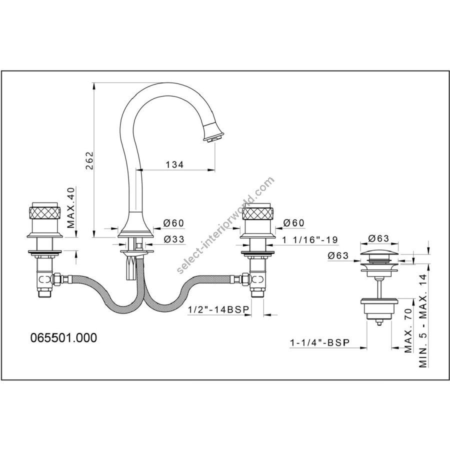 Bronces Mestre / Washbasin Fittings / Three holes basin set with black porcelain 065501.N00.84