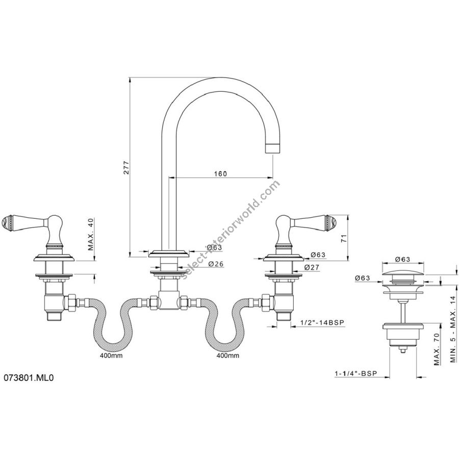 Bronces Mestre / Washbasin Fittings / Three holes basin set with malachite stone 073801.ML0.00